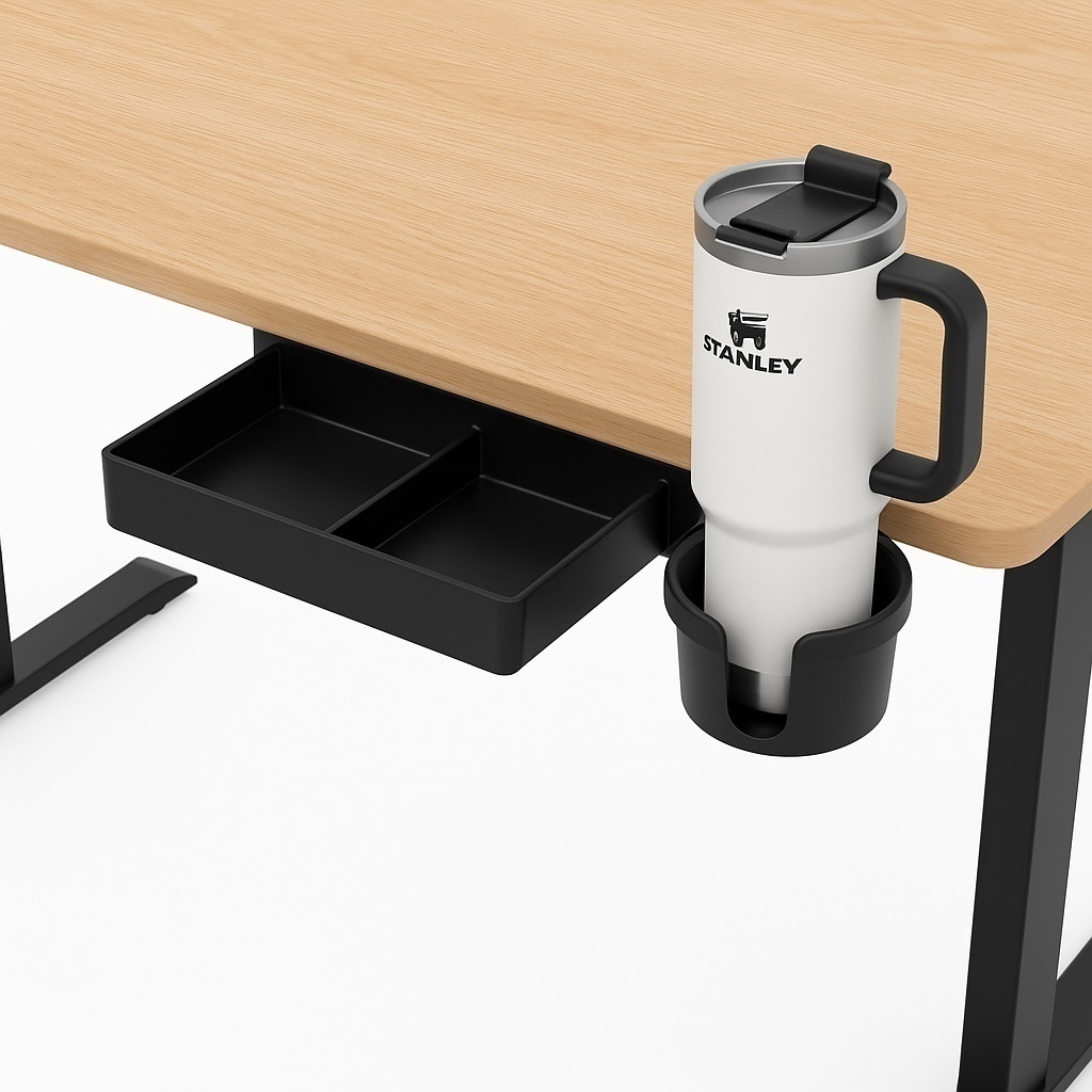 Maximizá el orden y la funcionalidad de tu espacio de trabajo con este práctico cajón organizador con porta vaso incorporado. Diseñado para instalarse debajo del escritorio, combina estética minimalista con utilidad real para el día a día.